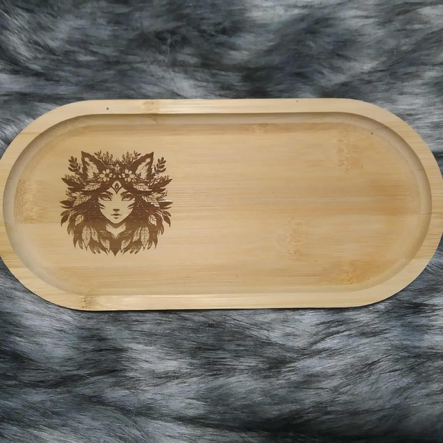 Petit plateau en bambou. Longueur 22,5 cm et largeur 10,5 cm. Avec gravure par nos soins.